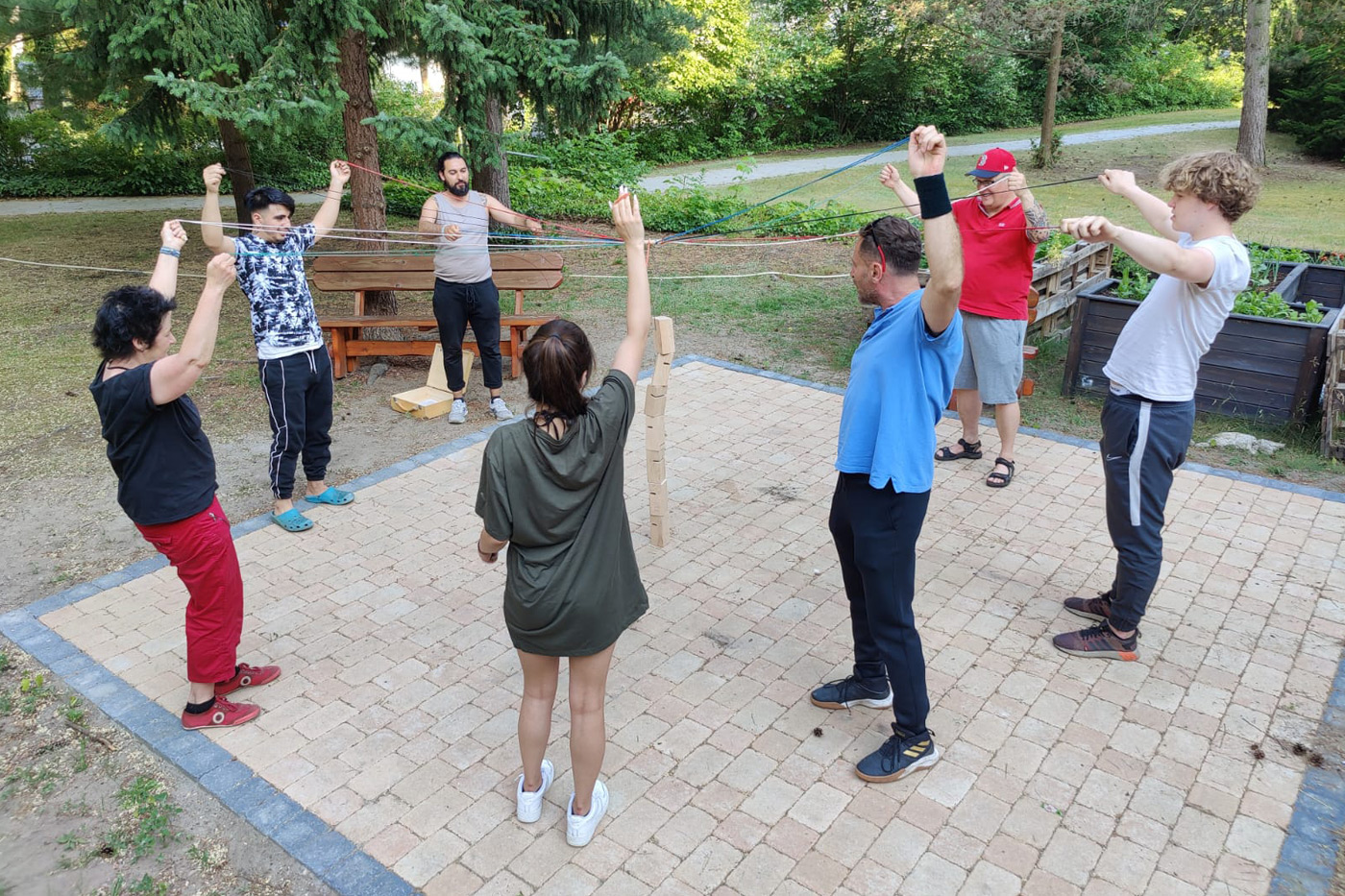 Auch die räumlichen Angebote sind umfangreich. Räume zur Bewegung und Entspannung, ein Fitnessraum und Werkstätten bieten jede Menge Platz, um sich zu entfalten. Für die Jugendlichen haben wir außerdem ein kleines selbstverwaltetes Jugendhaus auf unserem Gelände.